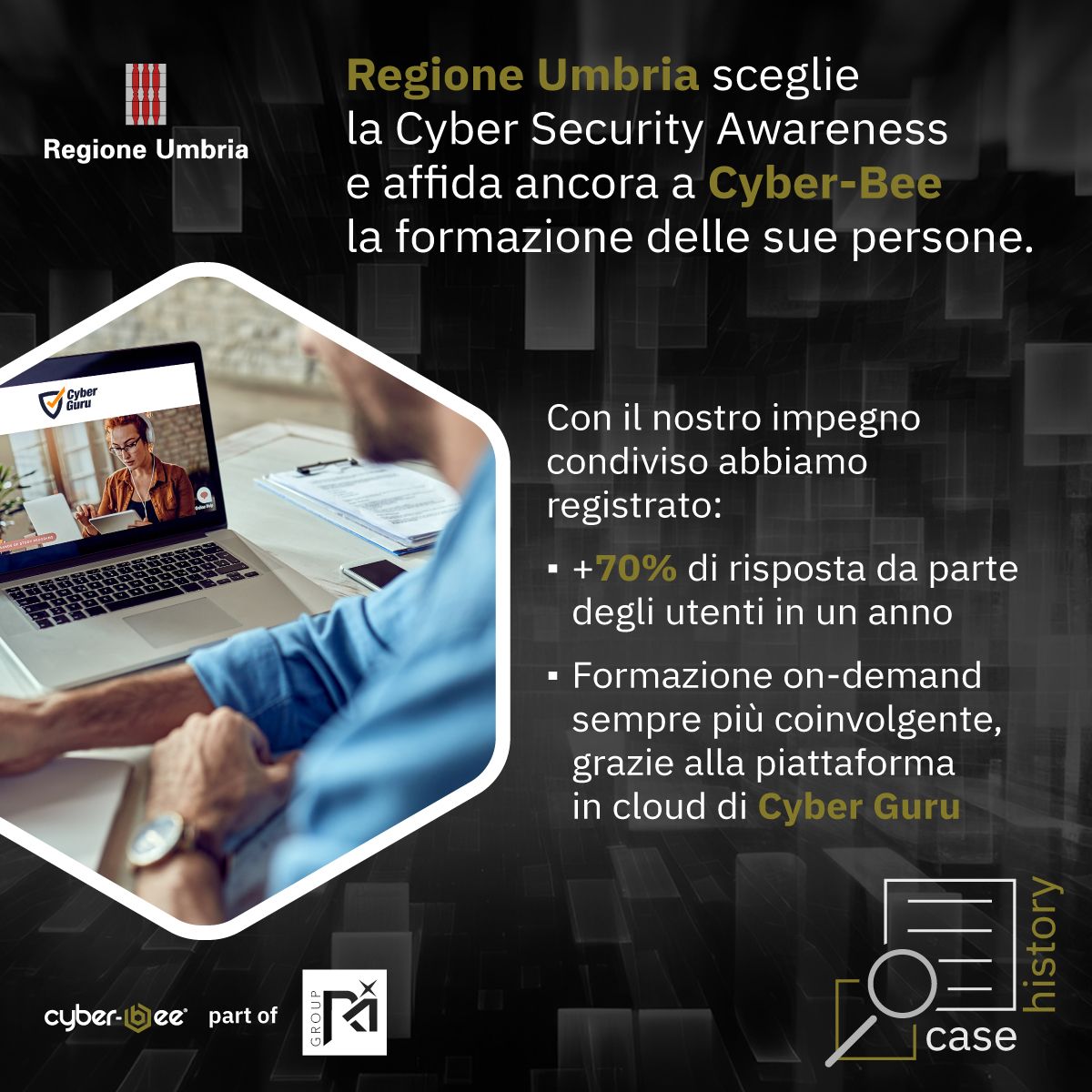 For the second year in a row, Regione Umbria has chosen Cyber-Bee to provide ongoing training for its employees and turn awareness into active advocacy with Cyber Guru’s Security Awareness Training platform.